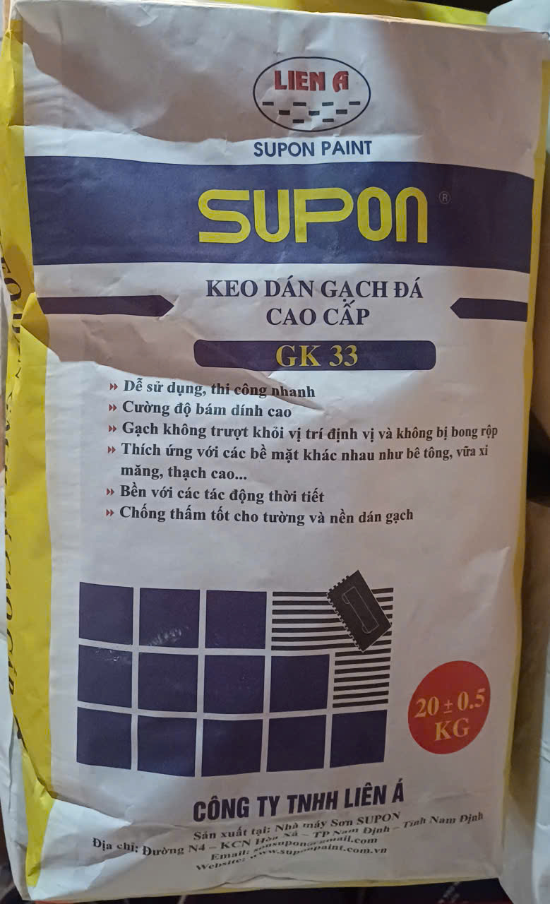 Keo dán gạch SUPON là dạng bột xám, khi sử dụng thì trộn với nước sạch.